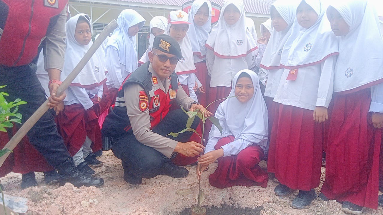 Dukungan Program Green Policing, Polres Siak Tanam Bibit Pohon di SDIT Muthamainnah