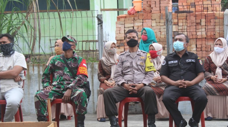 Babinsa, Babinkamtibmas, Ketua forum RT RW Senapelan, LKM Kelurahan Kampung Baru, serta Ketua LPM Kelurahan Kampung Baru, saat menghadiri peletakan batu pertama pembangunan Posyandu RT 01/RW 04 di Jalan Meranti, di Kelurahan Kampung Baru, Kecamatan Senapelan, Rabu (18/11/2020).