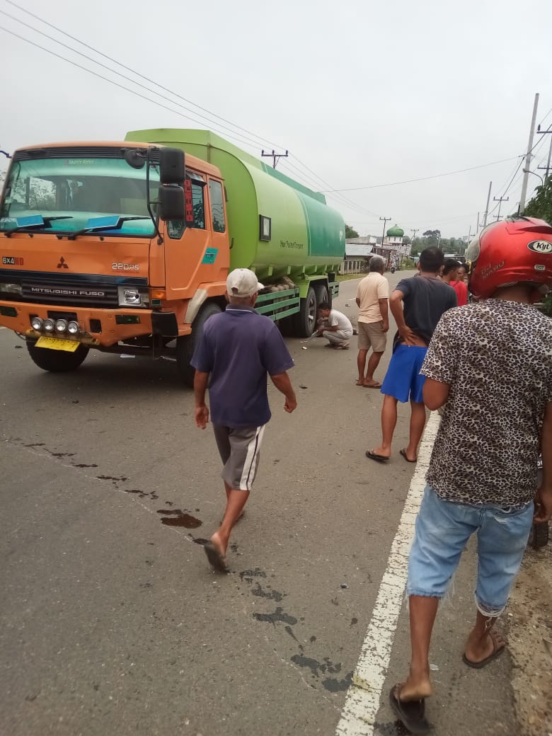 Dimana laka lantas tersebut, melibatkan 2 (dua) unit kendaraan bermotor, yakni 1 (Satu) unit Mobil Mitsubishi Tangki Tronton bernomor polisi BB 9776 FP warna orange pengangkut CPO salah satu pabrik Minyak Kelapa Sawit di wilayah Kuansing menabrak 1 (satu) unit Sepeda Motor Honda Scoopy bernomor polisi BM 5746 XR warna cream.