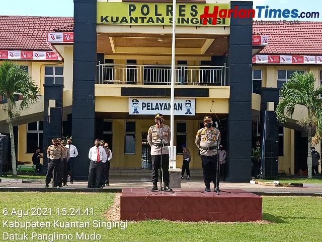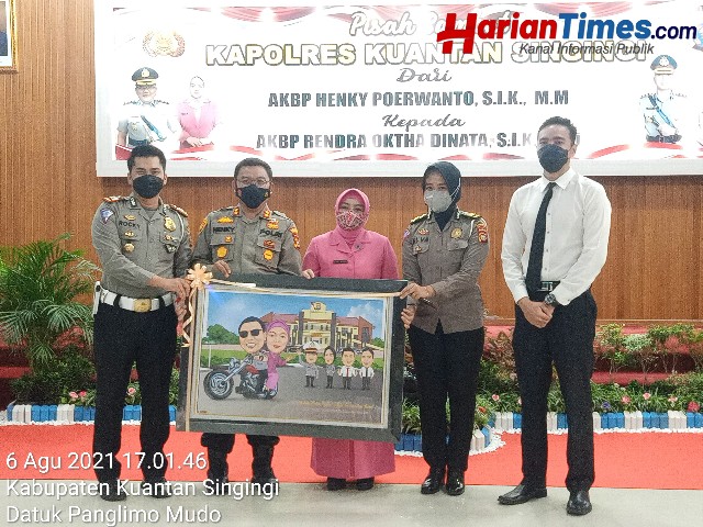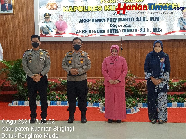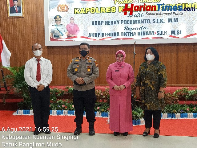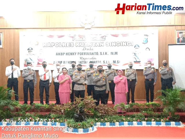 TELUK KUANTAN, HarianTimes.com - Resmi sudah, AKBP Rendra Oktha Dinata SIK MSi menjabat sebagai Kapolres Kuansing yang baru. Hal itu ditandai dengan acara pisah sambut yang dilaksanakan dengan Protokol Kesehatan (Prokes) ketat di Aula Rupatama Gedung Sanika Satyawada Mapolres Kuansing, Jum'at (06/08/2021) petang.